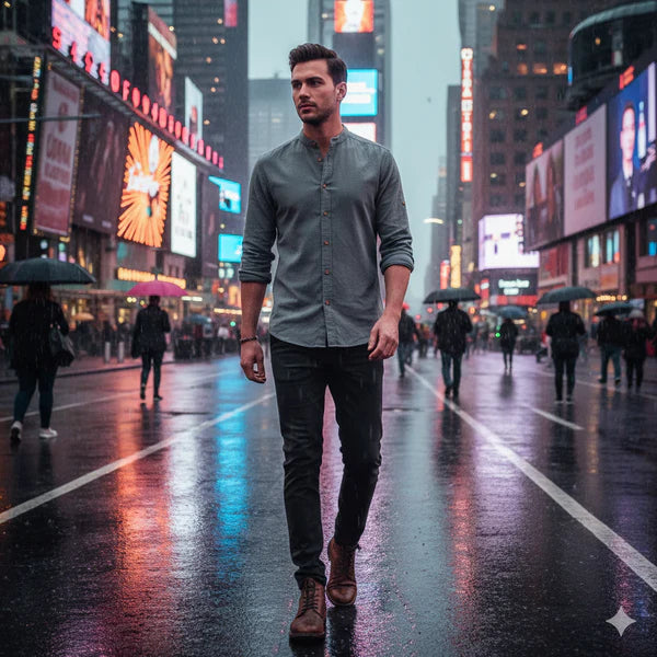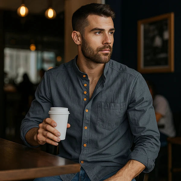 La camisa Osaka™ de Florenzzi captura el espíritu atemporal del diseño japonés gracias a su elegante cuello mandarín y sus líneas depuradas, uniendo la autenticidad cultural con un estilo contemporáneo.