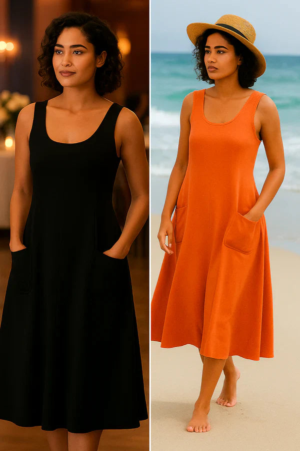 Vestido Midi Isadora Florenzzi – Elegancia Casual con Bolsillos